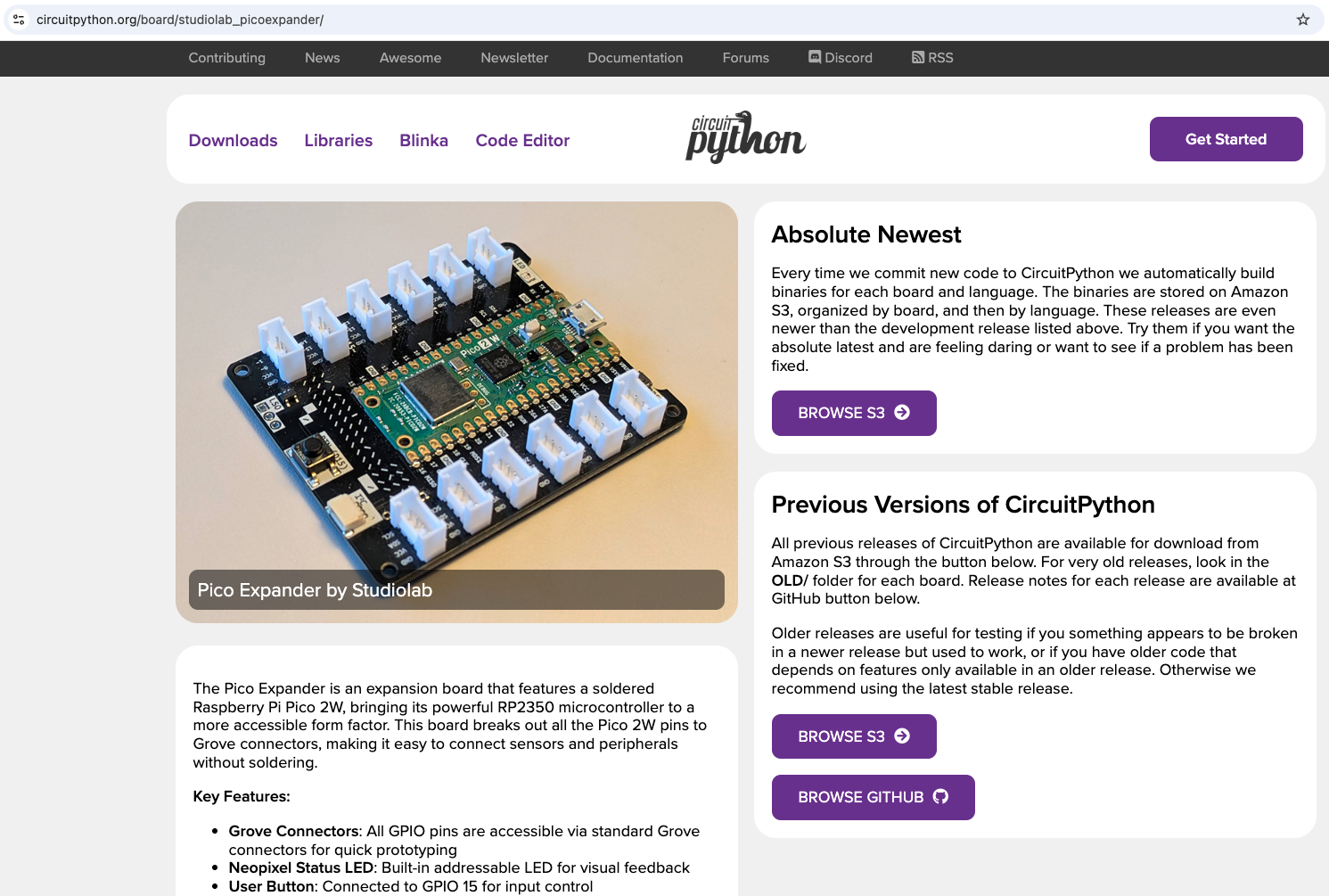 Download the latest stable version of CircuitPython at this page by pressing the