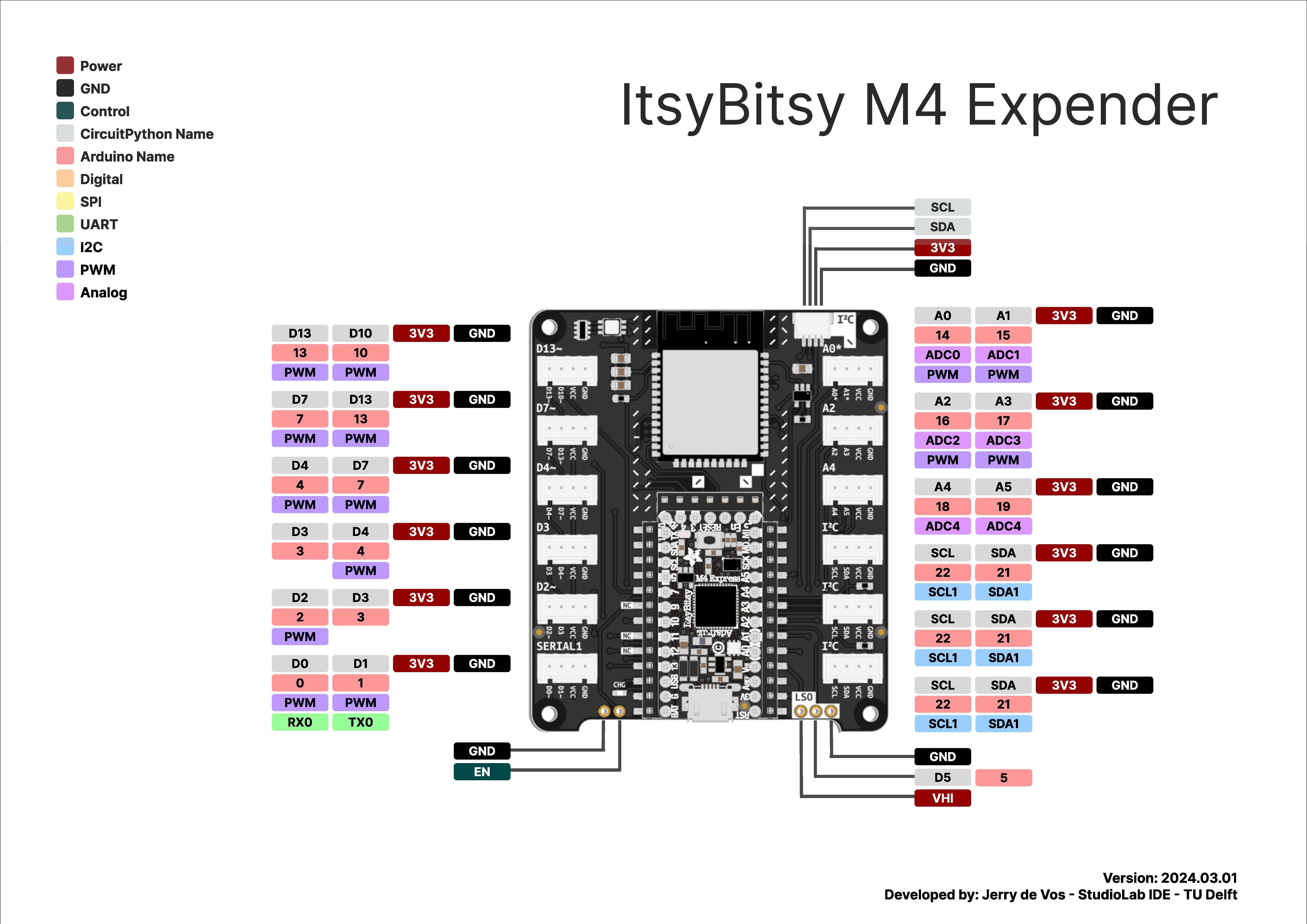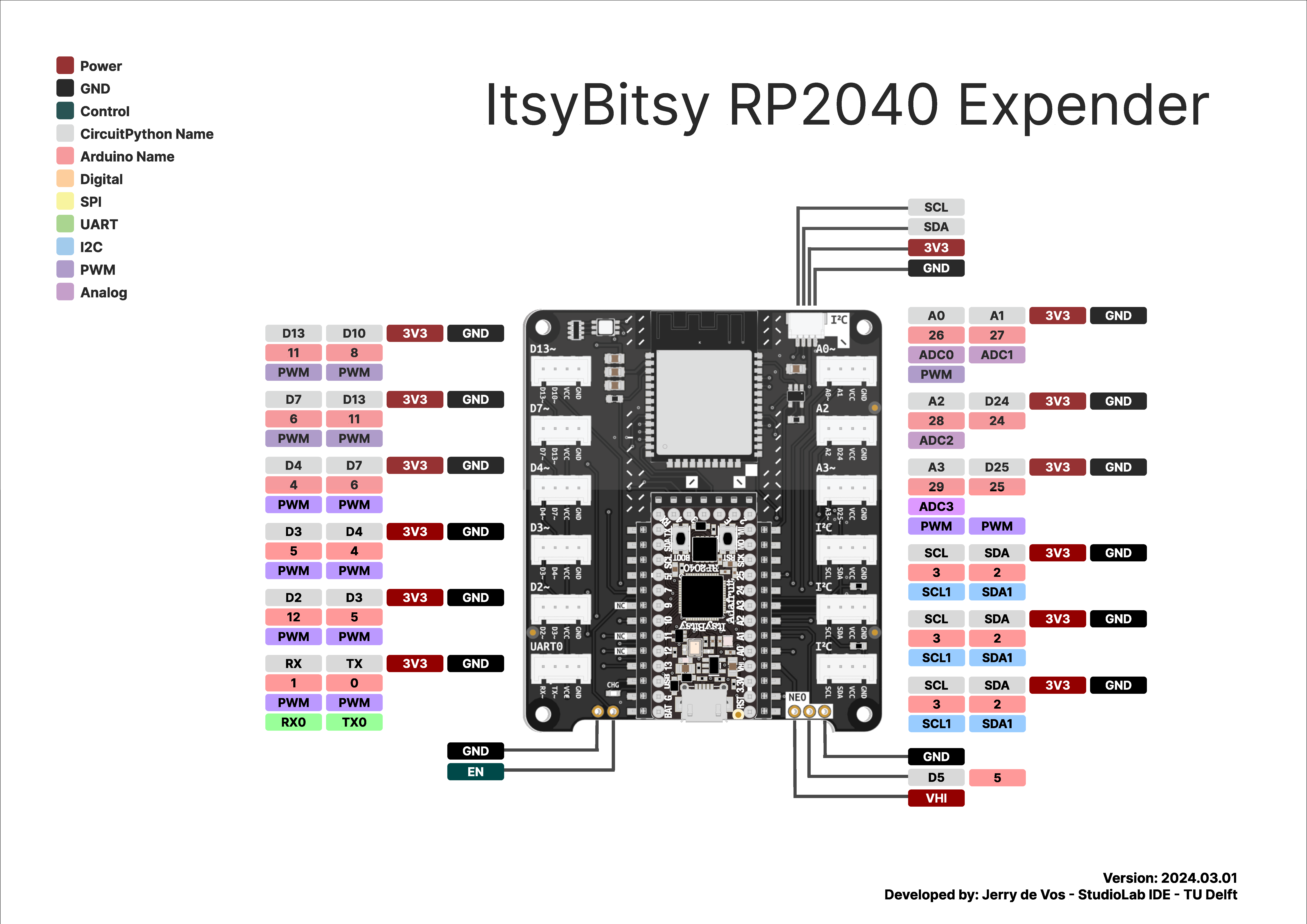 Pinout for the Itsy Bitsy RP2040 in the Extender