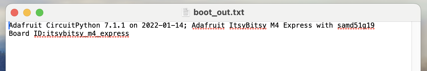 boot_out.txtfile. you should see something likeAdafruit CircuitPython 7.1.1this is the version of CircuitPython you are currently using. If this is already shows the version you want to upgrade to, you can stop this tutorial.