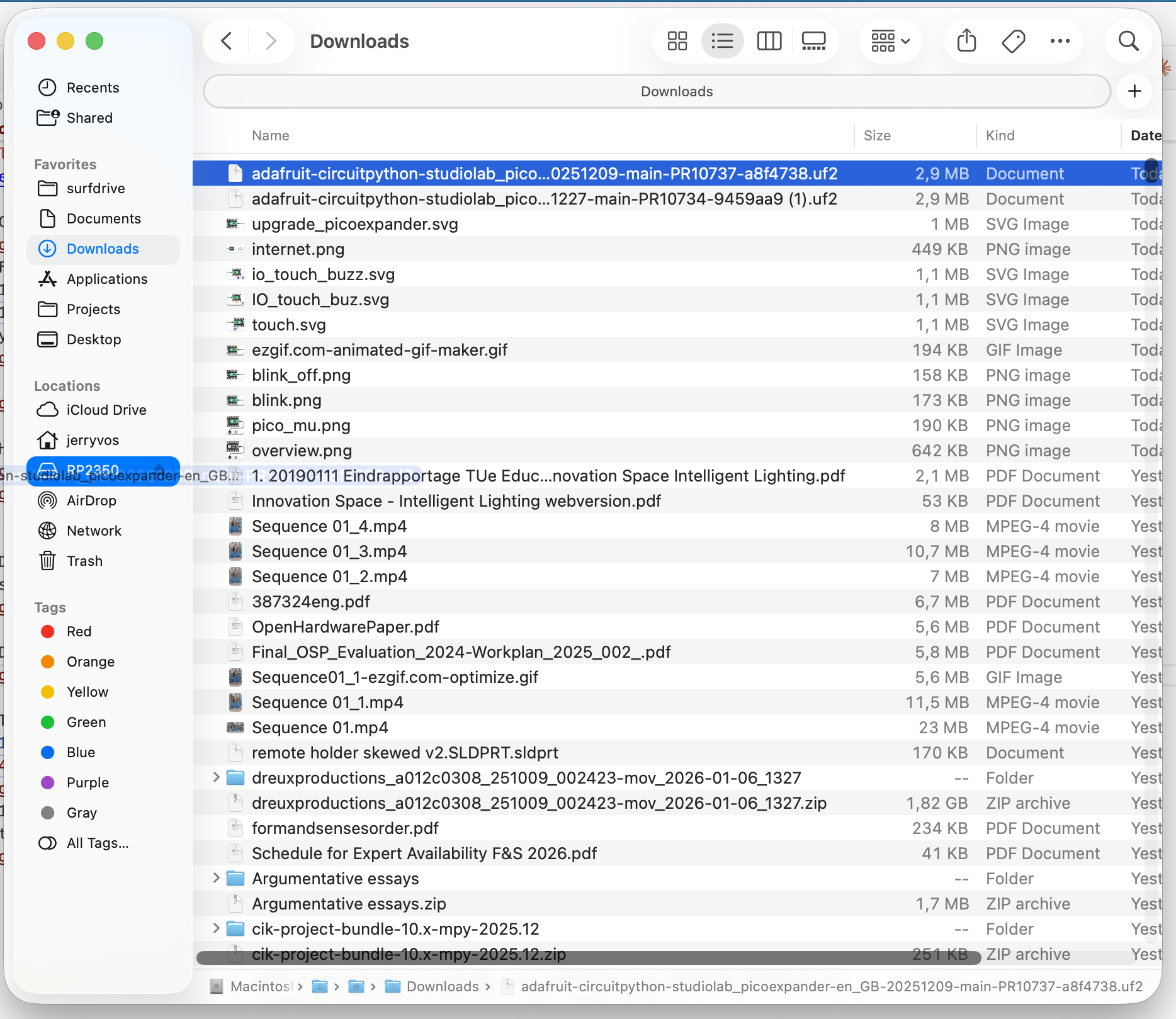 Drag the .uf2 file to the RP2350 drive, the drive disappears and reappears as: CIRCUITPY