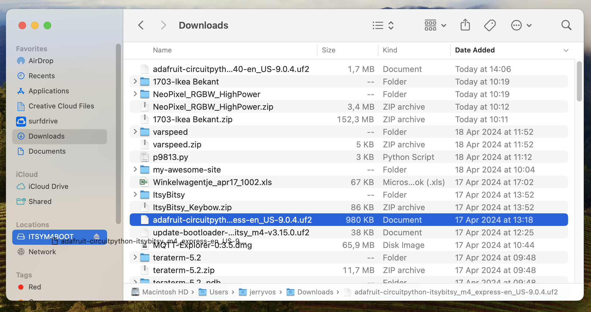 Drag the .uf2 file to the ITSYM4BOOT drive, the drive disappears and reappears as: CIRCUITPY