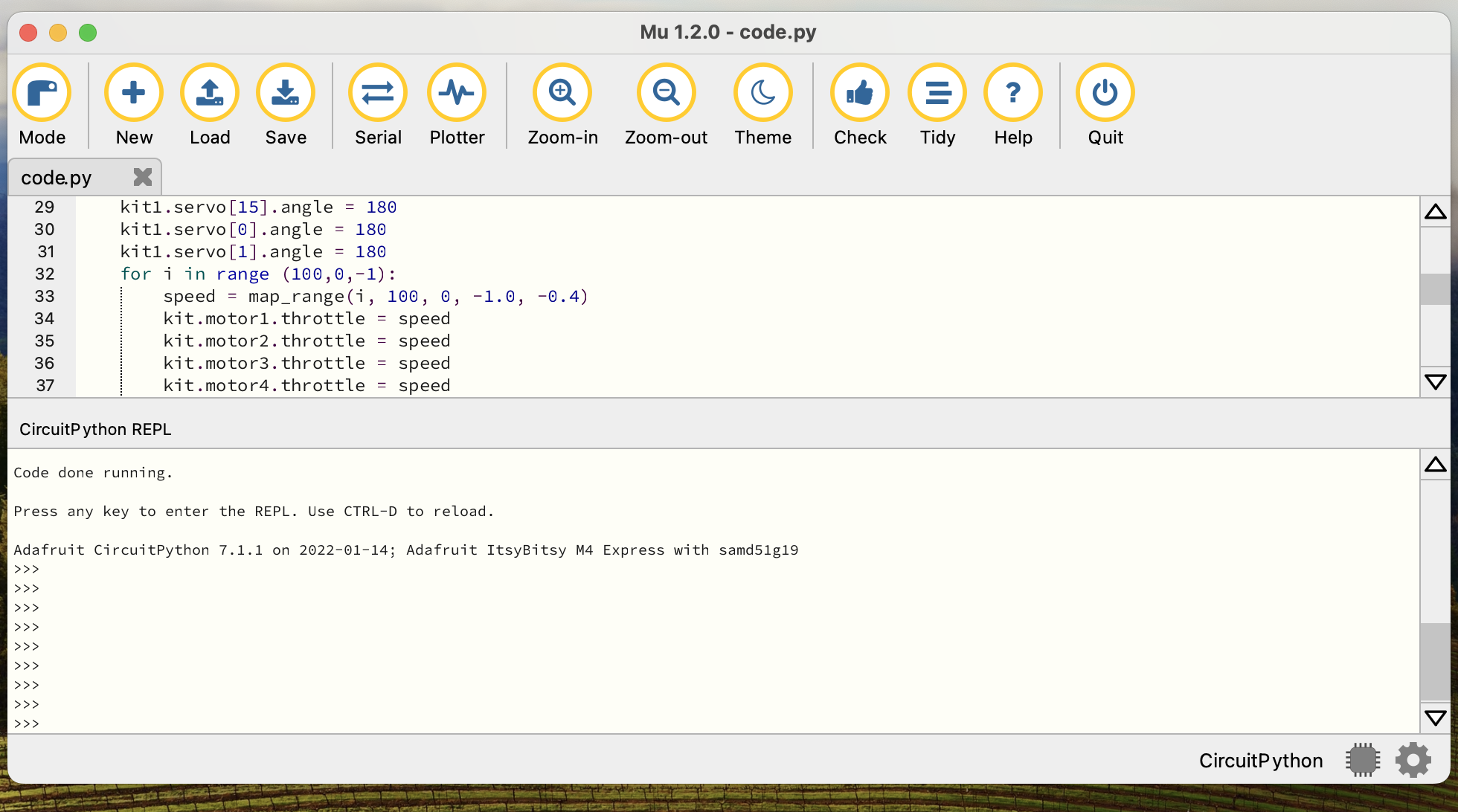 - Open MU editor, press the serial button, and in the REPL you should also see your version of CircuitPython printed. this is the version of CircuitPython you are now upgraded to.